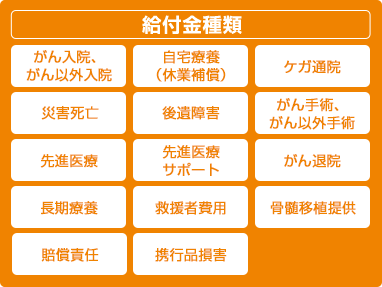 | 給付種類 | 補償内容 | 給付金額 | ||