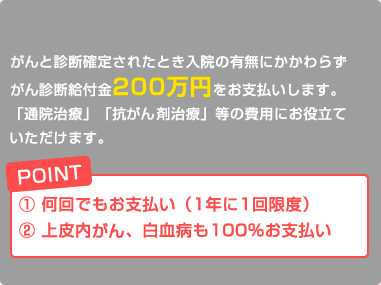 | 15 | がん診断給付金 | ● 初めてがんと診断確定されたとき ● がんが再発・転移したと診断確定されたとき ● 新たにがんが生じたと診断確定されたとき |